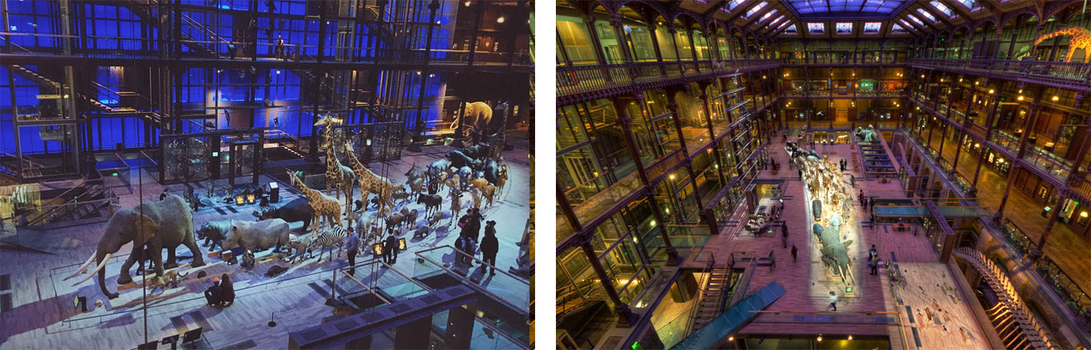 法國國家自然歷史博物館運用燈光、音效模擬了打雷的真實狀態。位於二樓的一對母女在不知情狀態下被雷雨聲所驚,小女孩向下望去,對母親說:“媽媽,我看不見獅子了。”她媽媽解釋道:“下雨了,獅子躲起來了。”而實際情況是,在模擬雷雨環境時,一樓陸地動物展區的燈光會隨著雷聲變暗,與周圍環境形成對比,從二樓向下望,獅子輪廓變得模糊了。