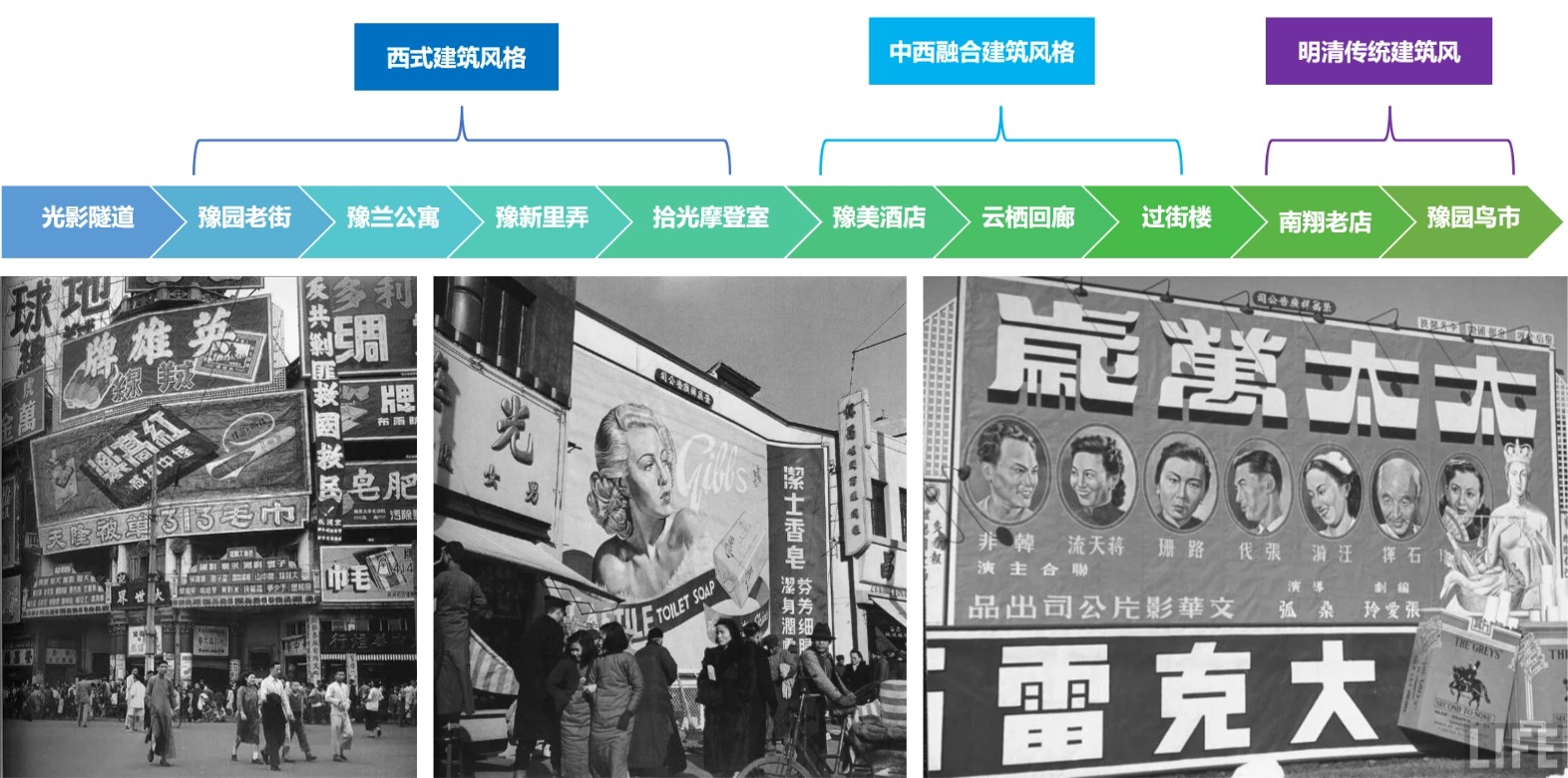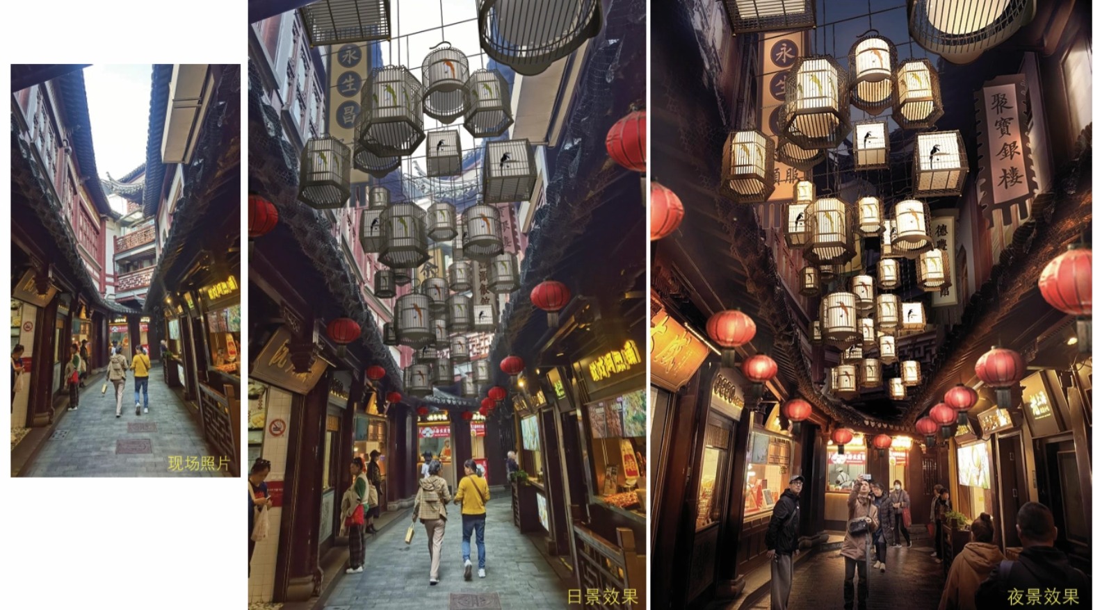 專案依據1930年代老上海的建築風貌,對豫園老街進行精細化復原,採用當時的建築材料與裝飾細節,如店鋪招牌、雕花木門、鑄鐵欄杆、馬賽克地磚等,重現那個時代的精緻與典雅。